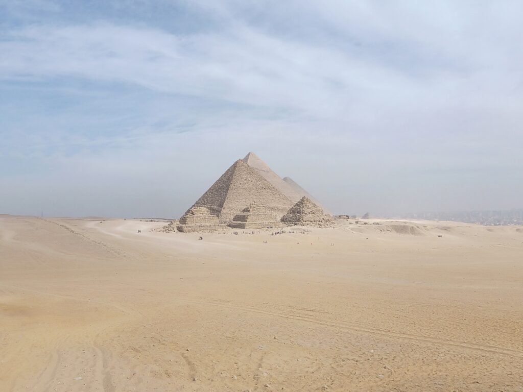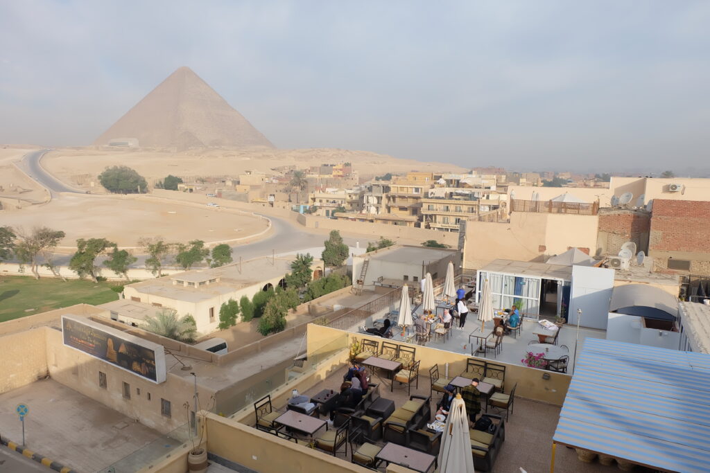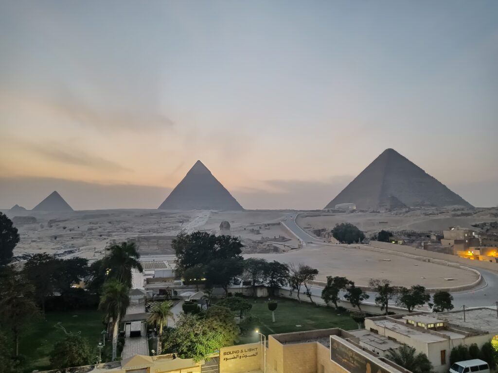 ปลายเพฤศจิกายนไม่กี่เดือนก่อนโควิดจะระบาดไปทั่วโลก ฉันและผองเพื่อนบินลัดฟ้าสู่เมืองไคโร อากาศยามค่ำคืนในเดือนก่อนสุดท้ายของปีค่อนข้างเย็น จากสนามบินไคโรใช้เวลาเกือบชั่วโมงก็มาถึงโรงแรมที่กีซ่า ที่พักส่วนใหญ่ของที่นี่ตั้งอยู่ใกล้ ๆ พีระมิด และมี Roof top ที่เป็นห้องอาหารให้เราสามารถสบตากับพีระมิดได้แบบพาโนรามาวิว ซึ่งเช้าวันต่อมาที่เมื่อขึ้นไปรับประทานอาหารเช้าบนนั้น ทันทีที่ภาพปรากฏตรงหน้า ก็ต้องร้องว้าวกับวิวที่มองเห็น เพราะมหาพีระมิดขนาดใหญ่แห่งกีซ่าและรูปแกะสลัก สฟิงซ์ ตั้งตระหง่านตรงหน้าเราราวกับอยู่ในความฝัน