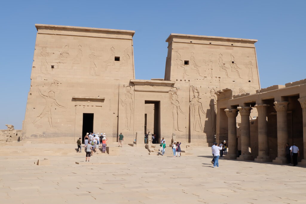 จุดหมายแรกของเราที่อัสวานก็คือ มหาวิหารกลางน้ำฟิเลห์ (Philae Temple หรือ Temple of Isis) ซึ่งเป็นวิหารที่สร้างขึ้นเพื่อบูชาเทพีไอซิส โดยวิหารแห่งนี้ถูกย้ายมาสร้างใหม่บนเกาะเล็กๆ แห่งหนึ่งแทน เพราะหากยังอยู่ที่เดิมก็จะจมอยู่ใต้น้ำหลังจากการสร้างเขื่อนอัสวานได้ โดยใช้เวลาถึง 7 ปีในการย้ายมาสร้างใหม่
