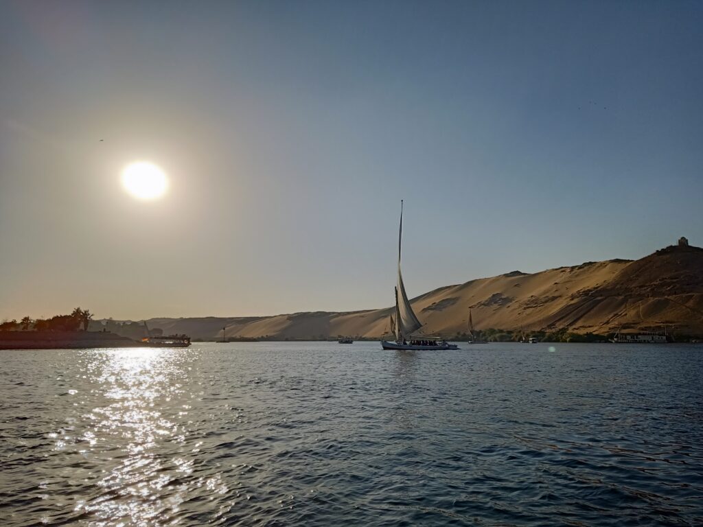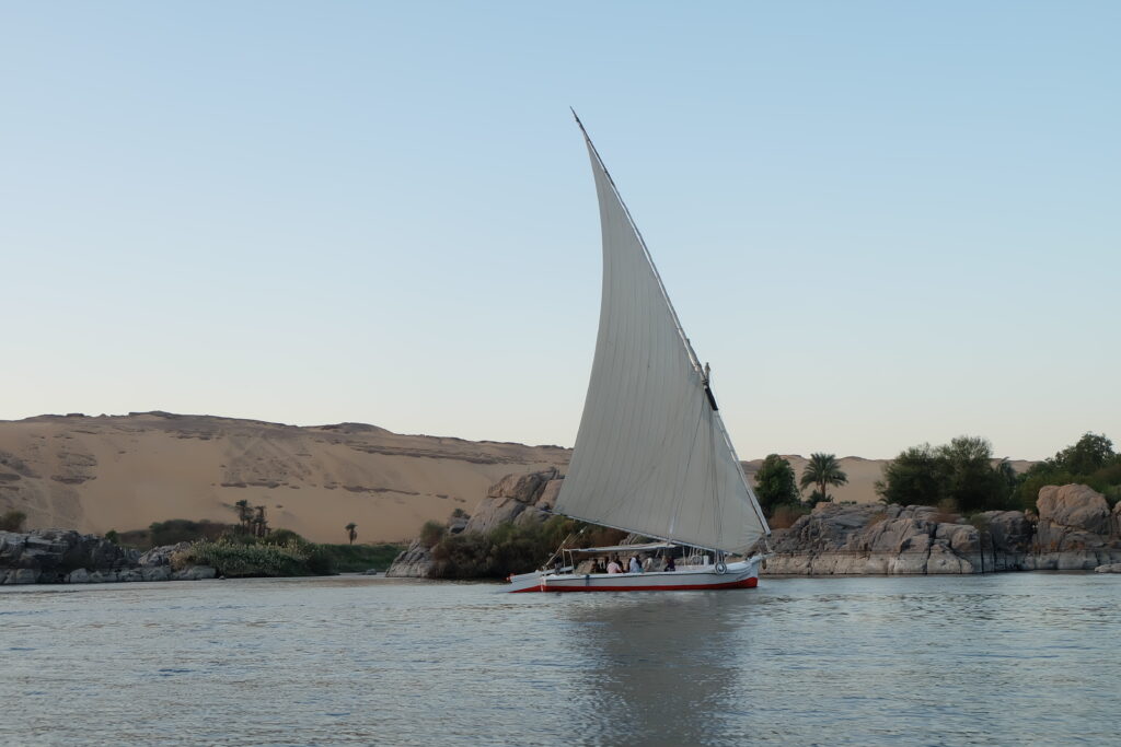 เรือที่เรานั่งล่องแม่น้ำไนล์เรียกว่า เรือเฟลุคกะ (Felucca) เป็นเรือใบดัดแปลงมาจากเรือโบราณของอียิปต์ที่มีขนาดไม่ใหญ่ แต่มีเสน่ห์และเข้ากับบรรยากาศการล่องแม่น้ำไนล์ ชมแสงยามบ่ายไล่ไปจนแสงสีทองยามพระอาทิตย์ลับขอบฟ้า